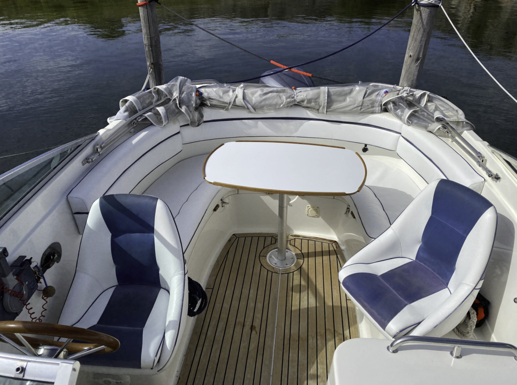 En mycket trevlig båt för sköna upplevelser på havet med övernattningsmöjligheter både inne i ruffen och ute i sittbrunnen.